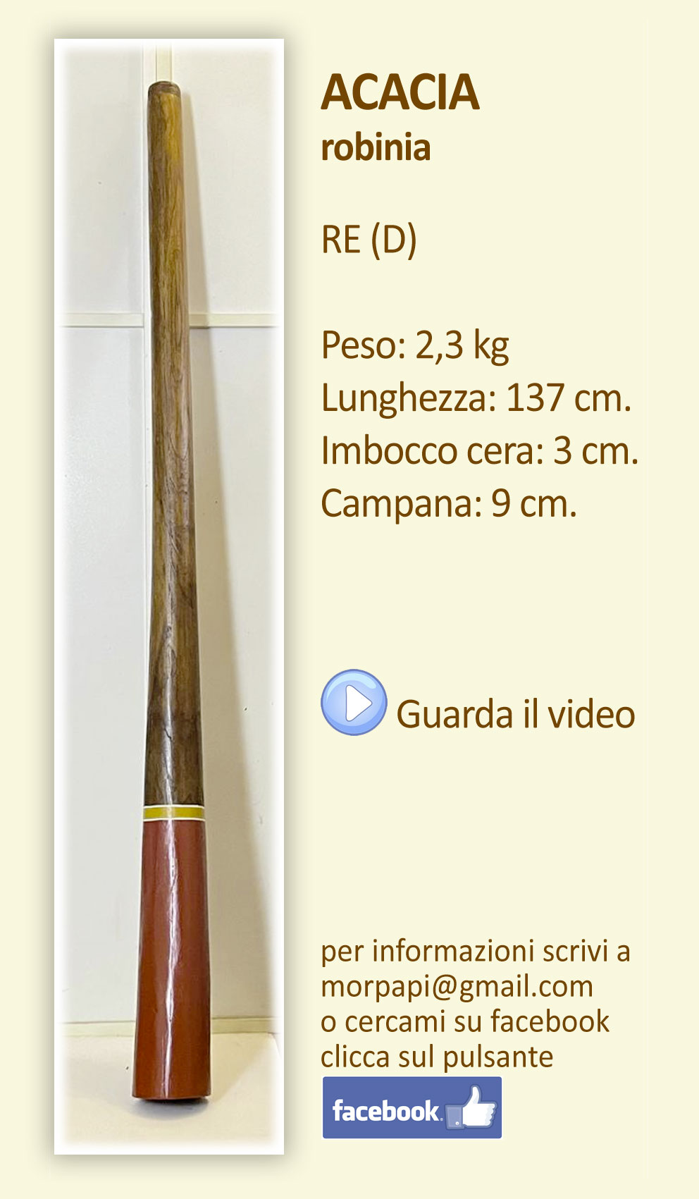 DISCLAIMER. A volte puo' succedere che lungo la superficie dei didgeridoo in legno si aprano delle crepe per via delle vibrazioni associate al cambiamento delle condizioni atmosferiche e all'umidità prodotta suonando. Le crepe, tra l'altro, non fanno distinzione tra uno strumento economico e uno costosissimo. Per riparare a questo spiacevole inconveniente si usa dello stucco forte per legno, come fanno i restauratori.