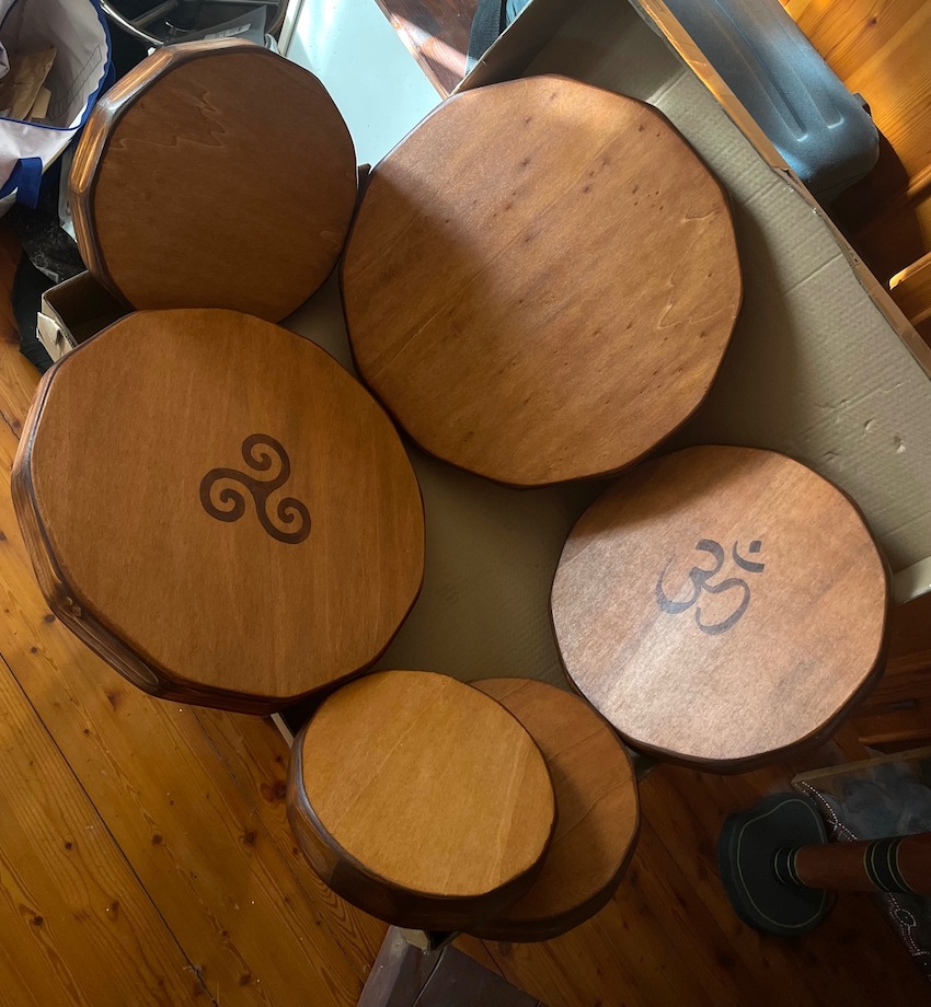 Ogni tamburo è un pezzo unico. Le misure variano tra i 25 e i 45 cm