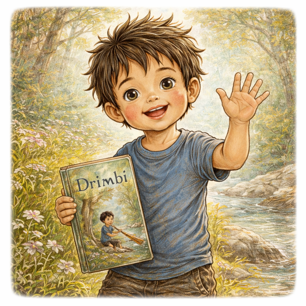 Drimbi è la storia delicata e luminosa di un bambino curioso che vive ai margini del bosco tra il vento che accarezza l’erba alta e il canto invisibile della natura.